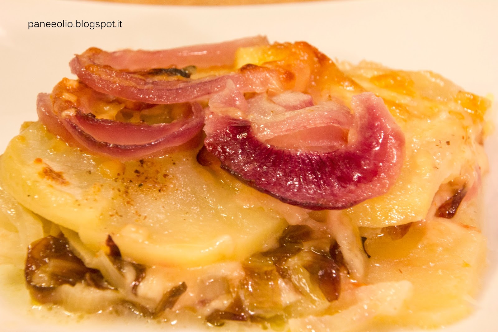 Ho pulito le patate e le ho tagliate a rondelle e uguale per le cipolle. Le bietole le avevo precedentemente lessate.